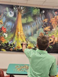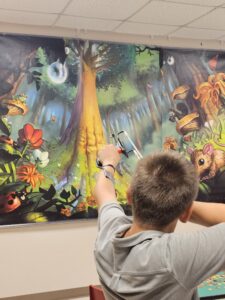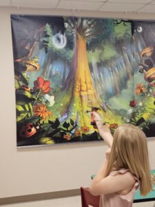 The kids loved hearing the story of David and Goliath.  David was a young boy who went up against a 9 foot 9 inch tall man named Goliath with only a staff, five smooth stones, and a slingshot.  He had faith that God would provide a victory to his people. David used 1 stone, put it in his slingshot, and slung it.  Goliath fell to the ground after being hit in the forehead and was defeated.  God provided victory for the Israelites through David.